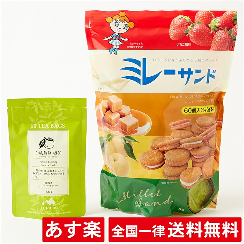 【セット】【ミレーサンド 5種 詰め合せ袋/60個入】&【白桃烏龍 極品 ルピシア ティーバッグ/10個入】LUPICIA ビスケット(キャラメル いちご ホワイト 抹茶 ゆず )お茶 緑茶 紅茶 台湾茶 フレーバードティー モンプレジール【あす楽】【送料無料】